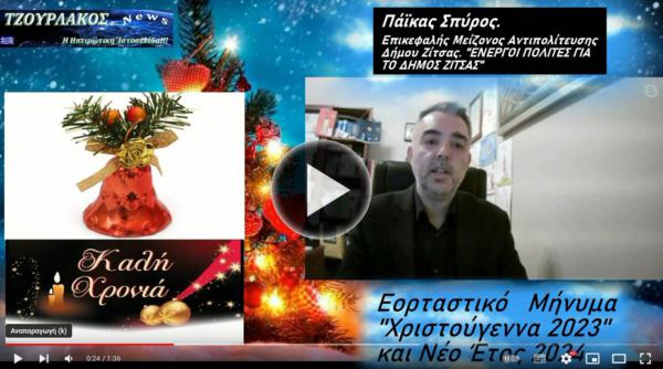 Πάϊκας Σπύρος. Τηλ.Εορταστικό Μήνυμα για Χριστούγεννα 2023 και Νέο Έτος 2024.Δείτε το.