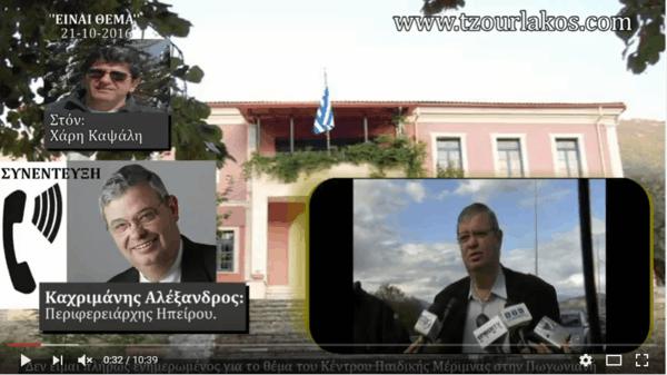 Τηλ.Συνέντευξη.Καχριμάνης Αλ.Περιφερειάρχης Ηπείρου.Κέντρο Παιδικής Μέριμνας Πωγωνιανής-Α.Τ.Κεφαλοβρυσου-Πρόσφυγες.