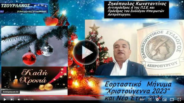 Ζηκόπουλος Κωνσταντίνος.Τηλεοπτικό Εορταστικό Μήνυμα για Χριστούγεννα 2023 και Νέο Έτος 2024.Δείτε το...
