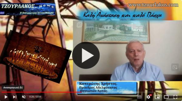 Ο Χρήστος Καπερώνης Πρόεδρος της Αδελφότητας Πηγιωτών Άρτας, στέλνει τίς Αναστάσιμες Ευχές του σε όλα τα απανταχού μέλη της Αδελφότητας.