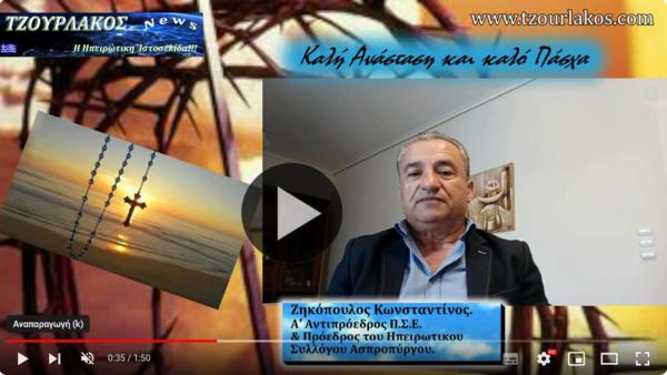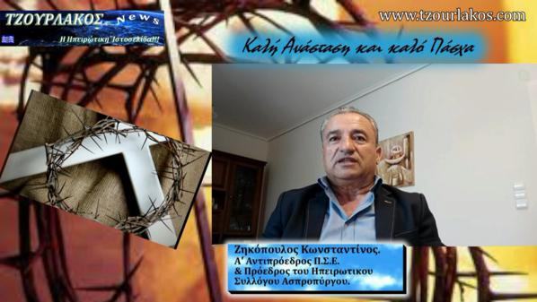 Ο Α' Αντιπρόεδρος της Π.Σ.Ε. και Πρόεδρος του Ηπειρώτικου Συλλόγου Ασπρόπυργου στέλνει τίς Αναστάσιμες Ευχές του σε όλους τους απανταχού Ηπειρώτες.