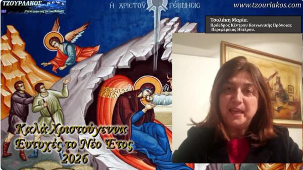 Η Πρόεδρος της Κοινωνικής Μέριμνας Περιφέρειας Ηπείρου, στέλνει τίς Ευχές του για Χριστούγεννα και Νέο Έτος 2026, σε όλους τούς συμπατριώτες απόδημους και Ομογενείς εξ Ηπείρου.