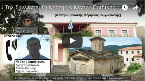 Τηλ.Συνέντευξη.Ντότης Δημήτριος.Αρχηγός Μείζονος Αντιπολίτευσης Δήμου Πωγωνίου.Κέντρο Παιδικής Μέριμνας Πωγωνιανή--Α.Τ.Συν.Κεφαλόβρυσο-Πρόσφυγες