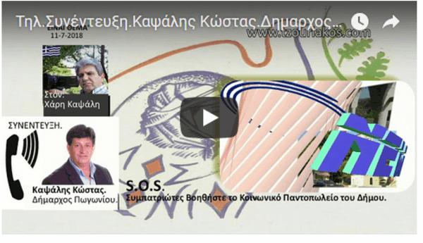 Μια τηλεφωνική συνέντευξη που κράτησε 1 ώρα και που συζητήθηκαν σχεδόν όλα τα προβλήματα που υπάρχουν και ταλαιπωρούν το Πωγώνι.Ο δήμαρχος Πωγωνίου σχολιάζει τα προβλήματα που ταλαιπωρούν την Μείζων Αντιπολίτευση του δήμου αλλά ακόμη σε πολλά σημεία της συνέντευξης πιέστηκε από πλευράς μας να πάρει θέση και να απαντήσει σε θέματα που ταλαιπωρούν την περιοχή μας για να μας δώσει ένα σαφή στίγμα της τωρινής κατάστασης.Ωστόσο πρέπει να πούμε πώς η αγωνία του δημάρχου κ.Κώστα Καψάλη για το κοινωνικό παντοπωλείο του δήμου είναι μεγάλη.Απευθύνεται πρός πάσα κατεύθυνση για την ενίσχυση του κοινωνικού παντοπωλείου και μας ενημερώνει πώς όλες οι καλοκαιρινές Εκδηλώσεις του δήμου θα έχουν φιλανθρωπικό χαρακτήρα.Αξίζει να την ακούσετε.