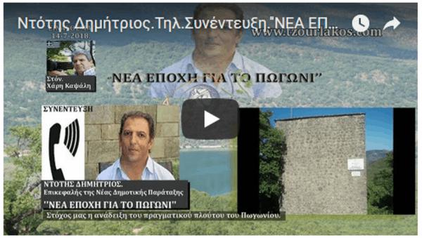 Τηλ.Συνέντευξη.Ντότης Δημήτρης.Νέα Δημοτική Παράταξη και το όνομα αυτής ''ΝΕΑ ΕΠΟΧΗ ΓΙΑ ΤΟ ΠΩΓΩΝΙ''