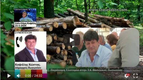 Καψάλης Κώστας.Δήμαρχος Πωγωνίου.Τηλ.Συνέντευξη.Απάντηση στην καταγγελία των τεσσάρων Δημοτικών Συμβούλων για την παράνομη υλοτομία στο δάσος της Τ.Κ.Βασιλικού Πωγωνίου.